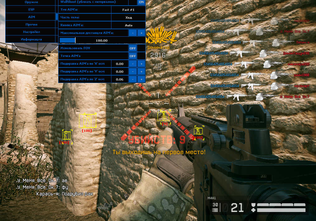 Доброго времени суток. Сегодня решил слить вас приватный чит для варфейс на 2019 год. Честно говоря не знаю сколько он будет работать, но с таким читом стоит поиграть, так как в нем присутствует все для комфортной игры начиная обычным esp заканчивая мясным аимом.